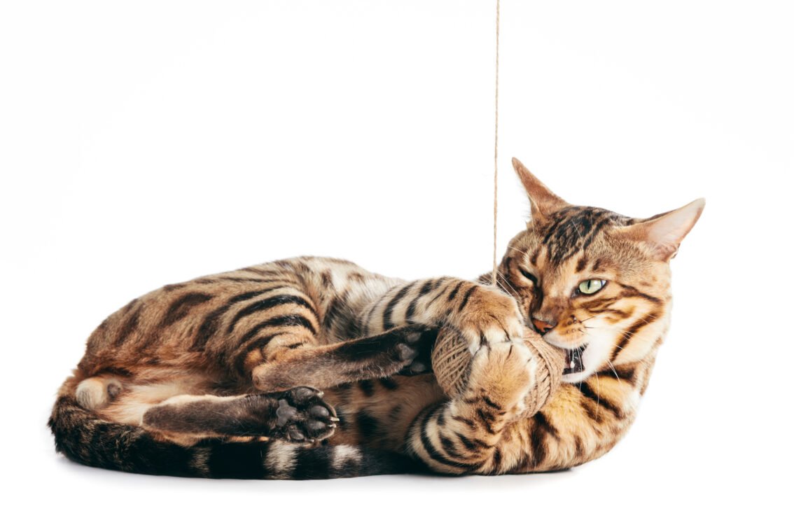 Sediakan banyak mainan dan ruang bermain untuk kucing Bengal. Mereka membutuhkan aktivitas fisik agar tetap sehat dan bahagia.